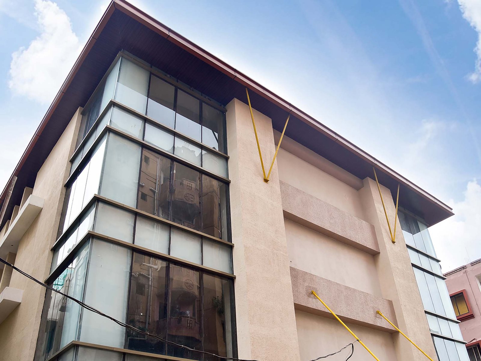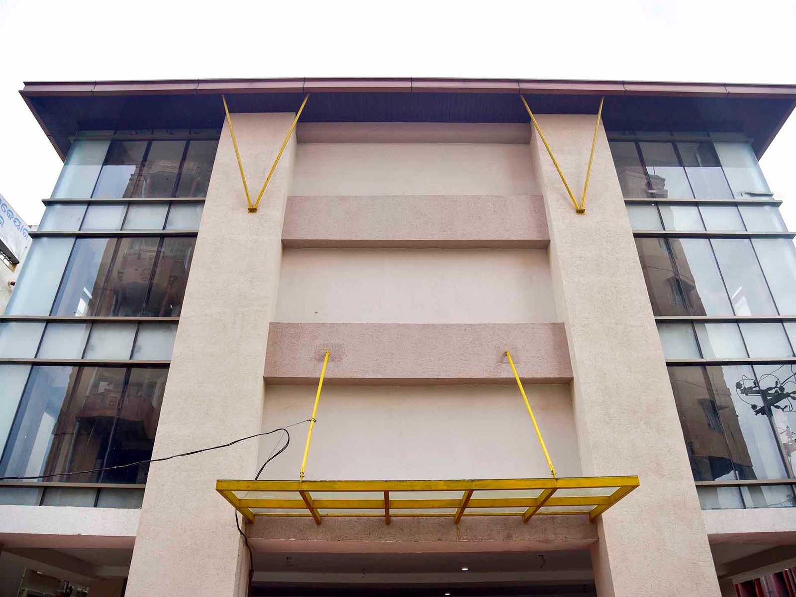 Located right beside jaydev vihar square, this five storied building strives to provide the highest quality of commercial/office/retail space available today. The main criteria during the planning stage was to have as much flexibility as possible to accommodate a variety of uses in the future. So, it was decided to have column free spans in the interior spaces with low beam depths. In order to be able to do that, a post tensioned structure (unbonded. Class-2 type) was decided upon to support the 54 foot long spans with a 14 inch beam depth including slab (designed and executed by uchith engineers). All possible building services have been taken into. Account while designing this each floor has 2 toilets. A pantry, an electrical/server room and a storage area. The building has a modern, Minimalist look where the corners have been diluted. With clear glass for any sort of product display. Overall the building is designed to have a confident. Yet subtle presence the building construction process. Es expected to be completed In one year's time Client trinity green estates llp