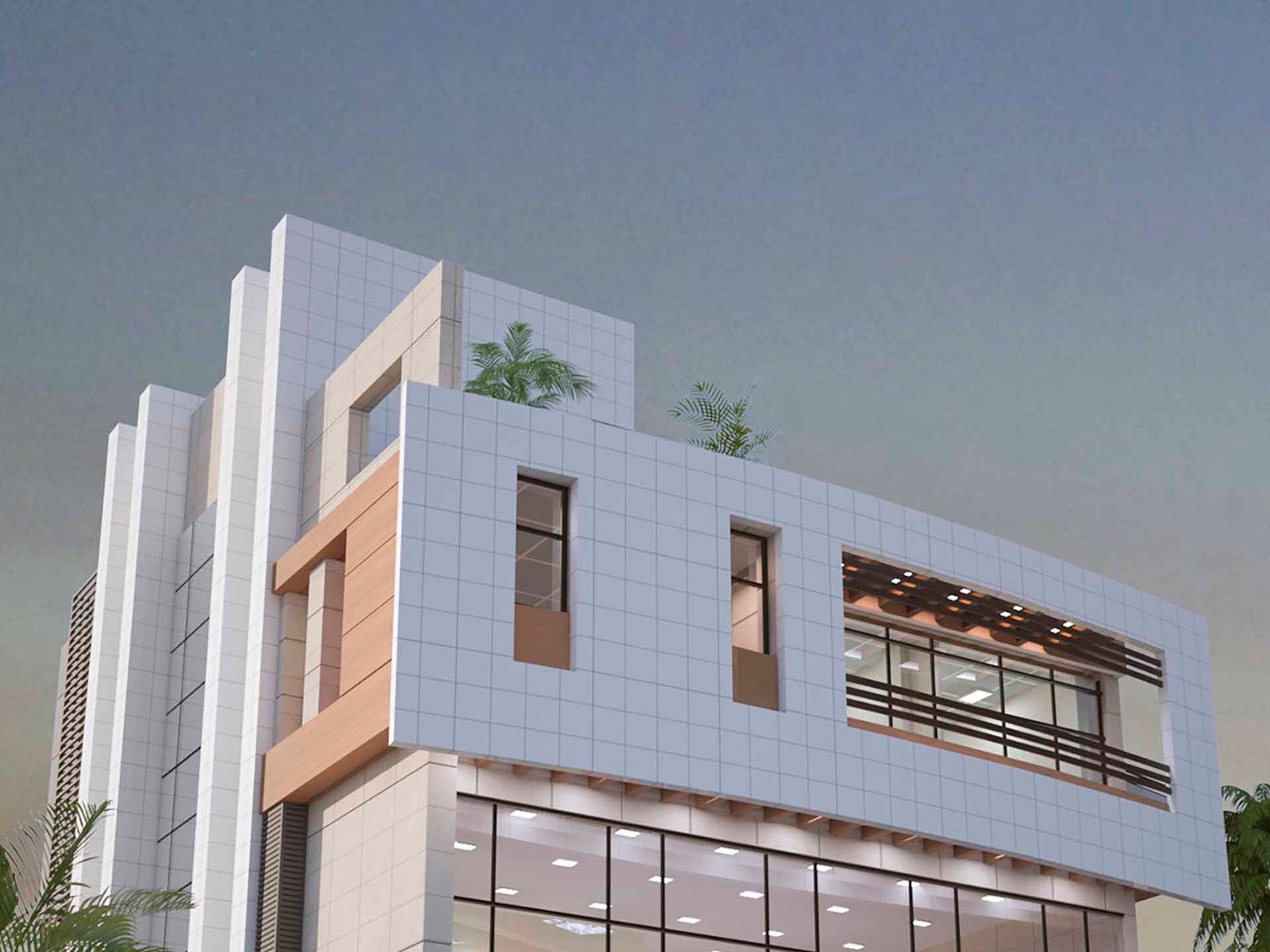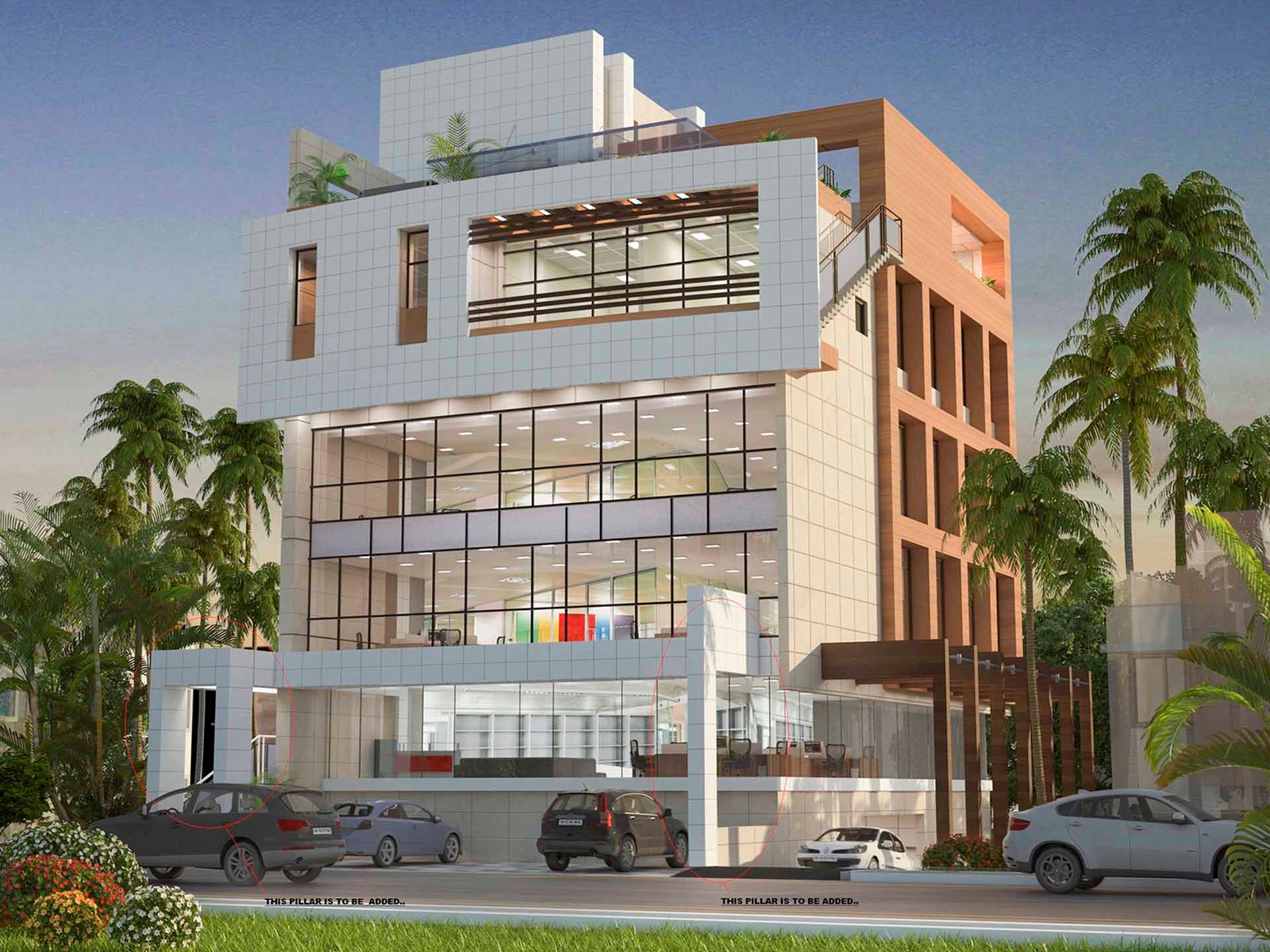 Mixed use project in saheed nagar completed at bhubaneswar. Project comprises of a stilt floor for parking, three floors of open plan commercial space like office/retail space and top floor of penthouse for the owner.